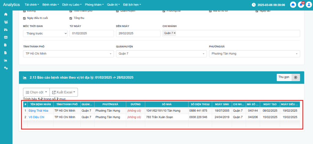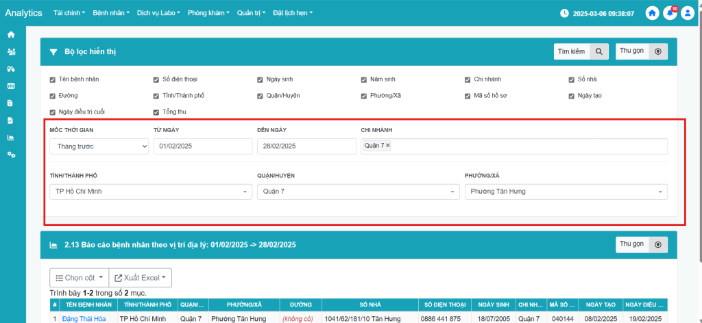 [Báo cáo] Hướng dẫn sử dụng tính năng Báo cáo bệnh nhân theo vị trí địa lý