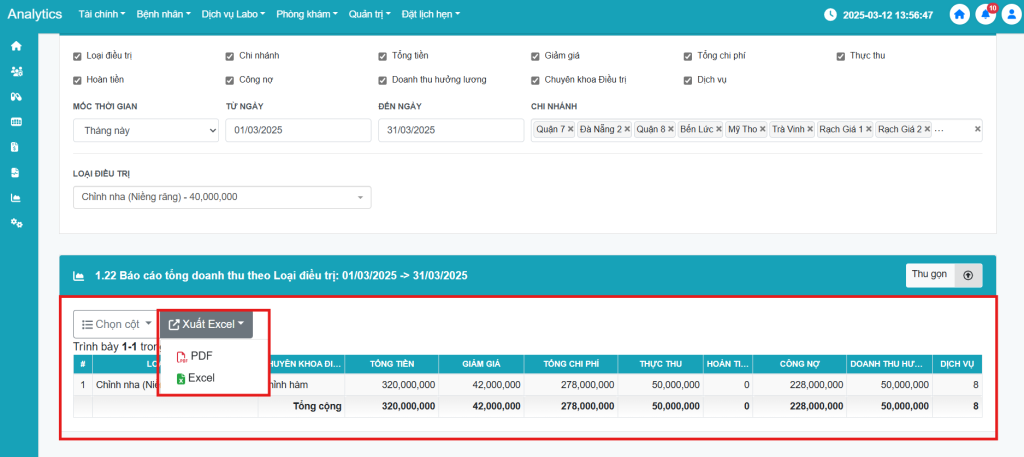[Báo cáo] Hướng dẫn người dùng xuất Báo cáo doanh thu dịch vụ chỉnh nha