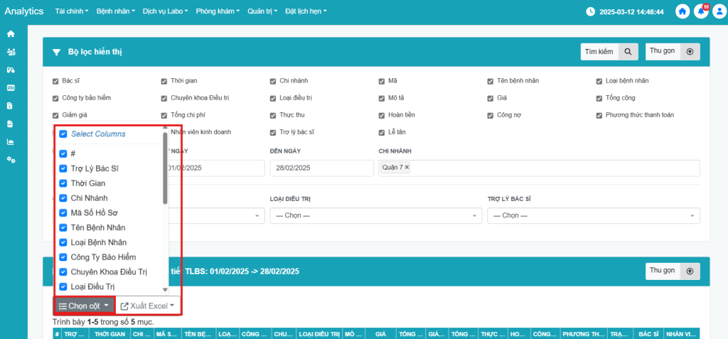 - Trợ lý bác sĩ: Lựa chọn dữ liệu của Trợ lý bác sĩ muốn xem
