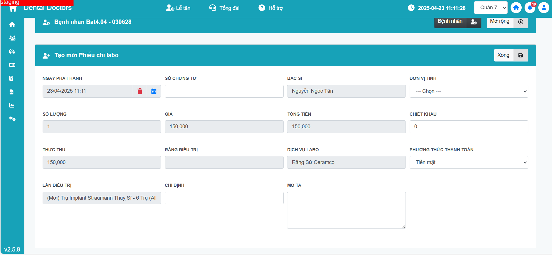 [Phòng khám] Hướng dẫn sử dụng tính năng nhập chi phí lab