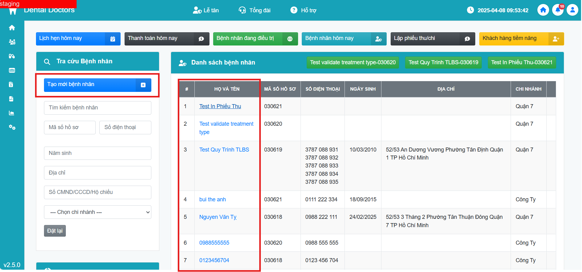Tạo mới bệnh nhân hoặc chọn bệnh nhân cần nhập chi phí lab