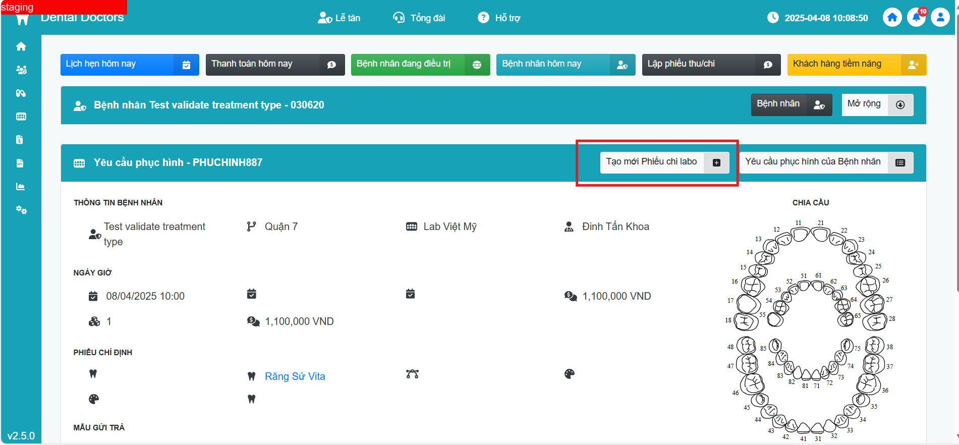 Có thể tạo yêu cầu phục hình và sử dụng tính năng phục hình, Xem được phiếu cbi labo