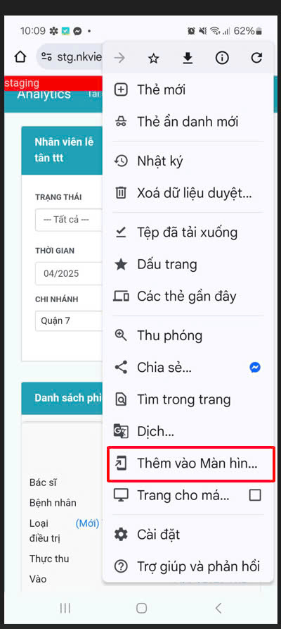 Bước 5: Cho tiện Bác Sĩ sử dụng và thao tác mọi người có thể thêm vào màn hình chính