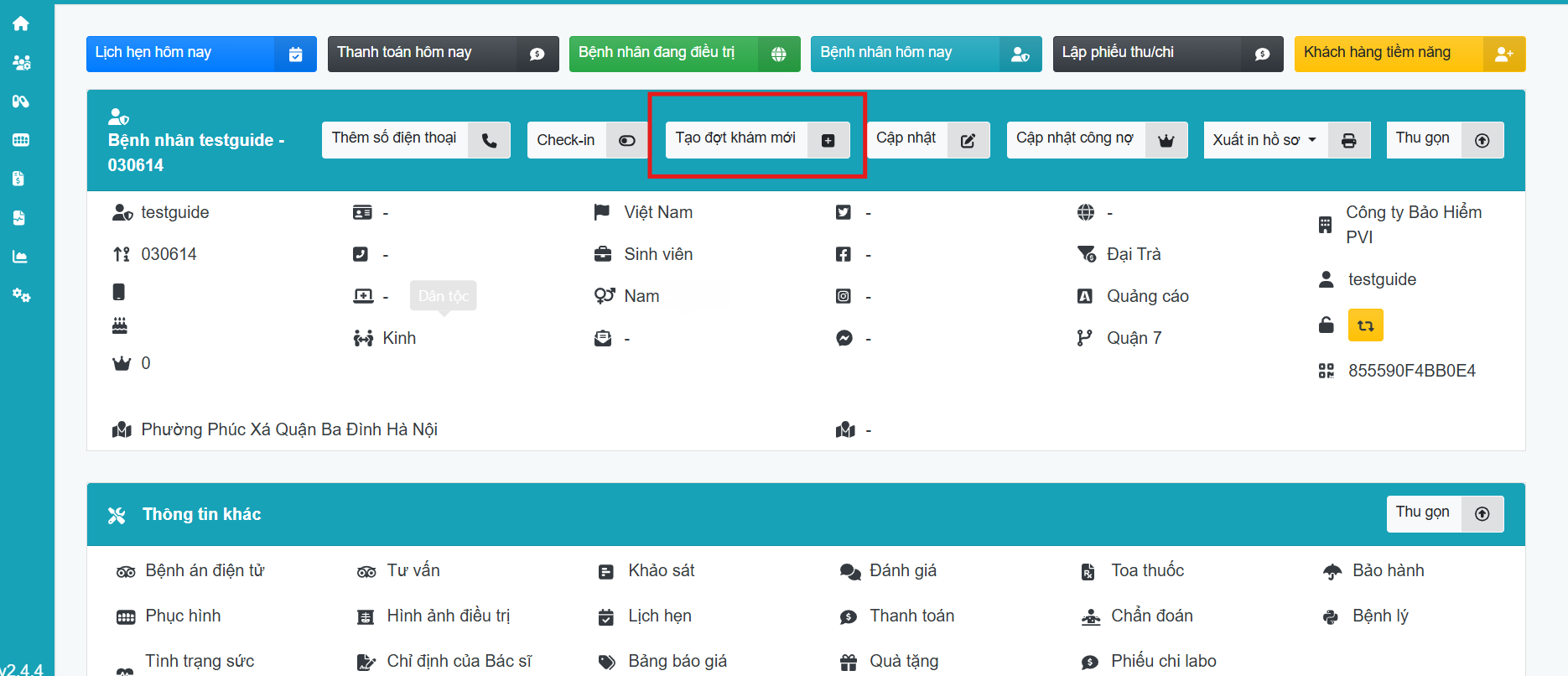 Bước 4: Tạo đợt khám mới cho bệnh nhân