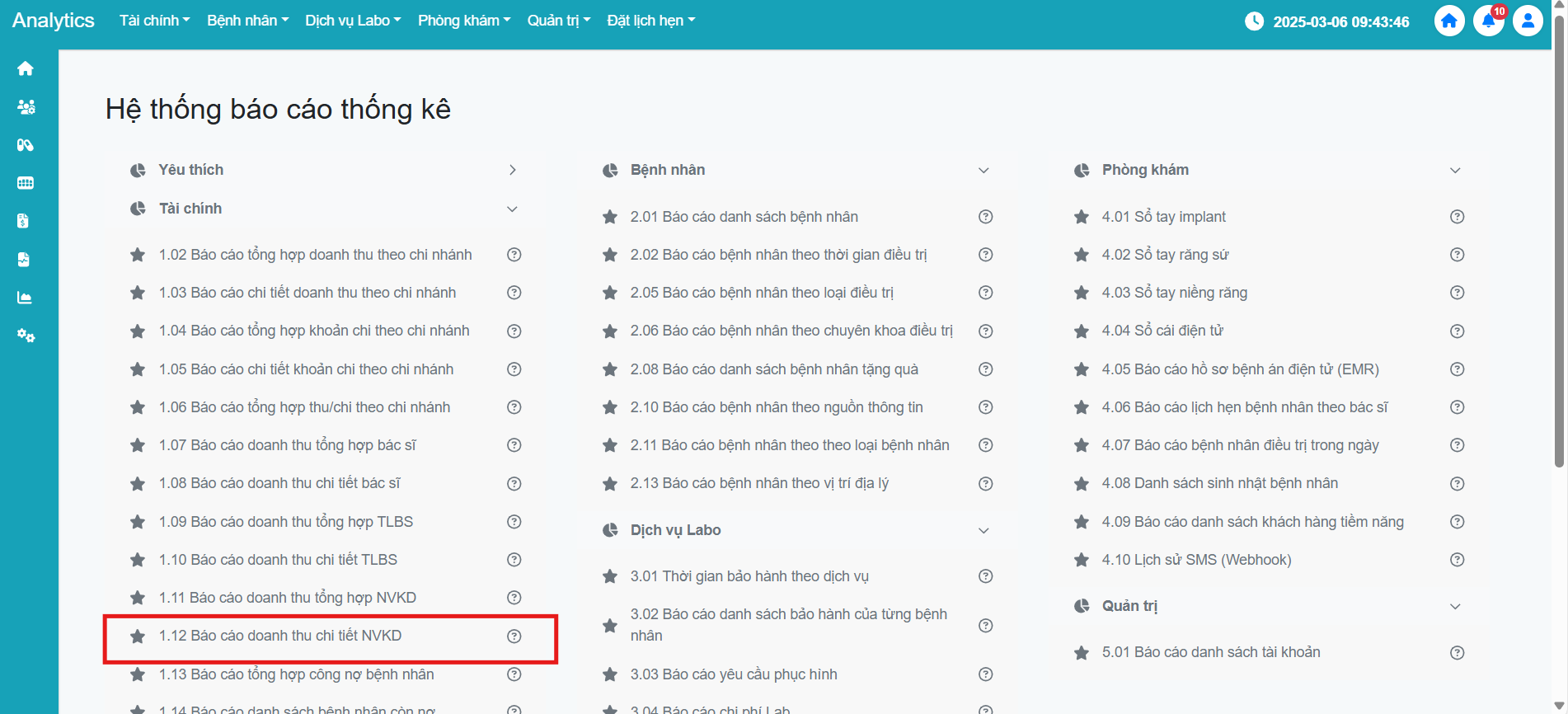 Bước 3: Tìm đến mục 1.12 Báo cáo doanh thu chi tiết NVKD