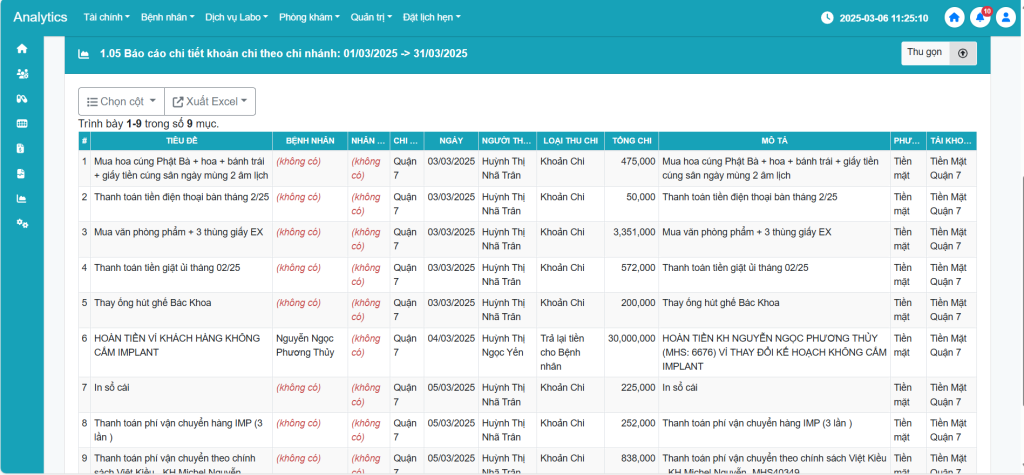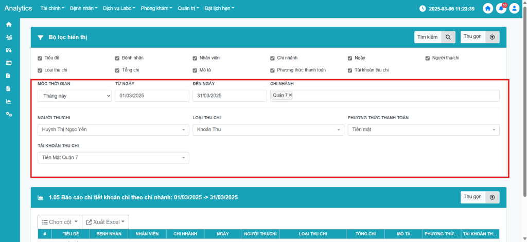 [Báo cáo] Hướng dẫn sử dụng tính năng Báo cáo chi tiết khoản chi theo chi nhánh