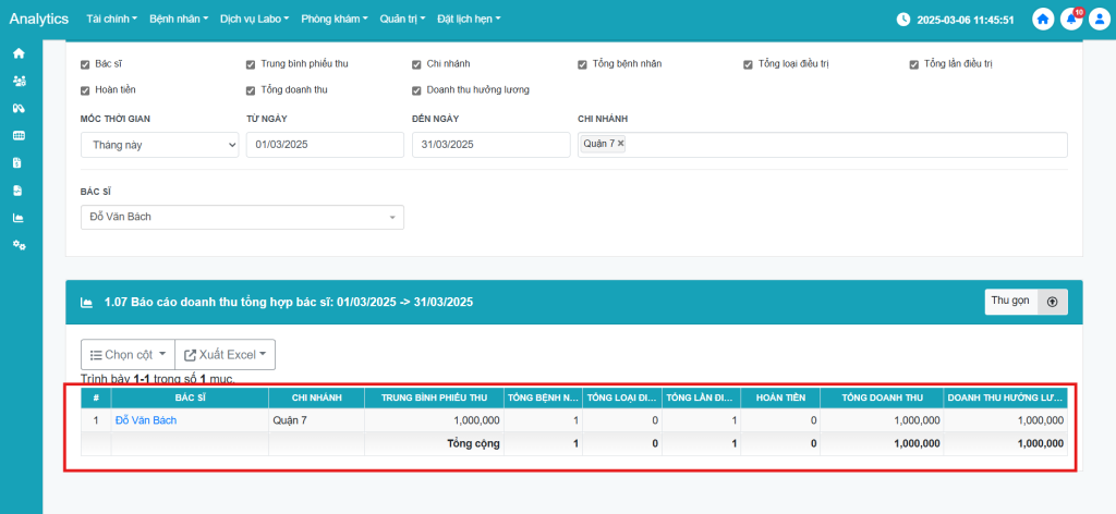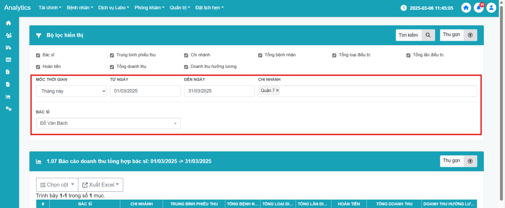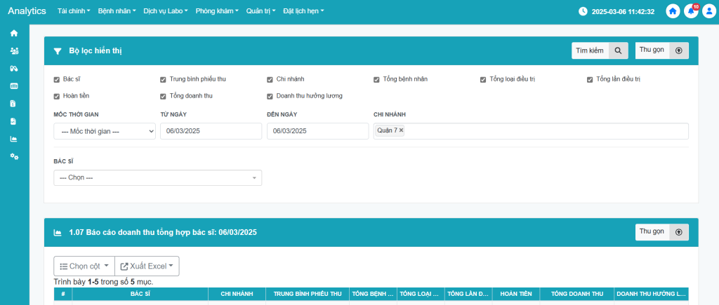 [Báo cáo] Hướng dẫn sử dụng tính năng Báo cáo doanh thu tổng hợp bác sĩ