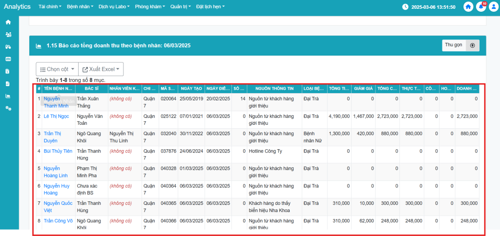 [Báo cáo] Hướng dẫn sử dụng tính năng Báo cáo tổng doanh thu theo bệnh nhân