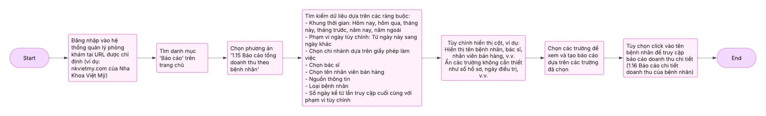Bước 3: Tìm đến mục 1.15 Báo cáo tổng doanh thu theo bệnh nhân