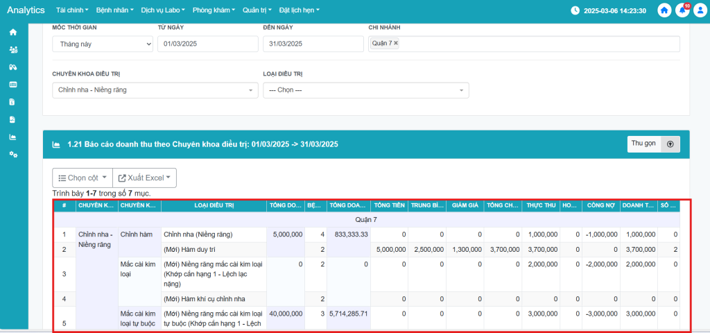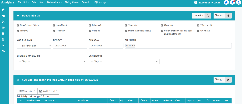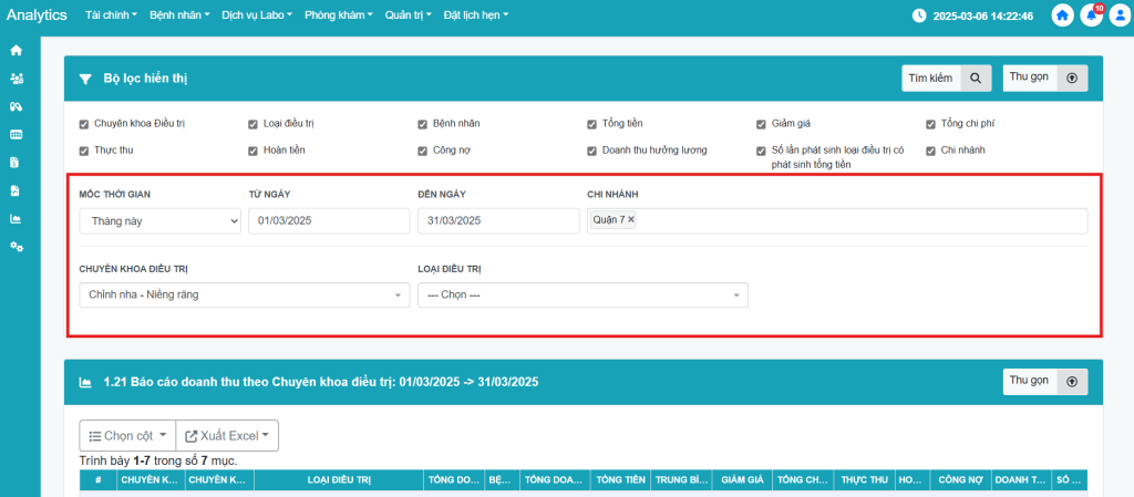 [Báo cáo] Hướng dẫn sử dụng tính năng Báo cáo doanh thu theo Chuyên khoa điều trị