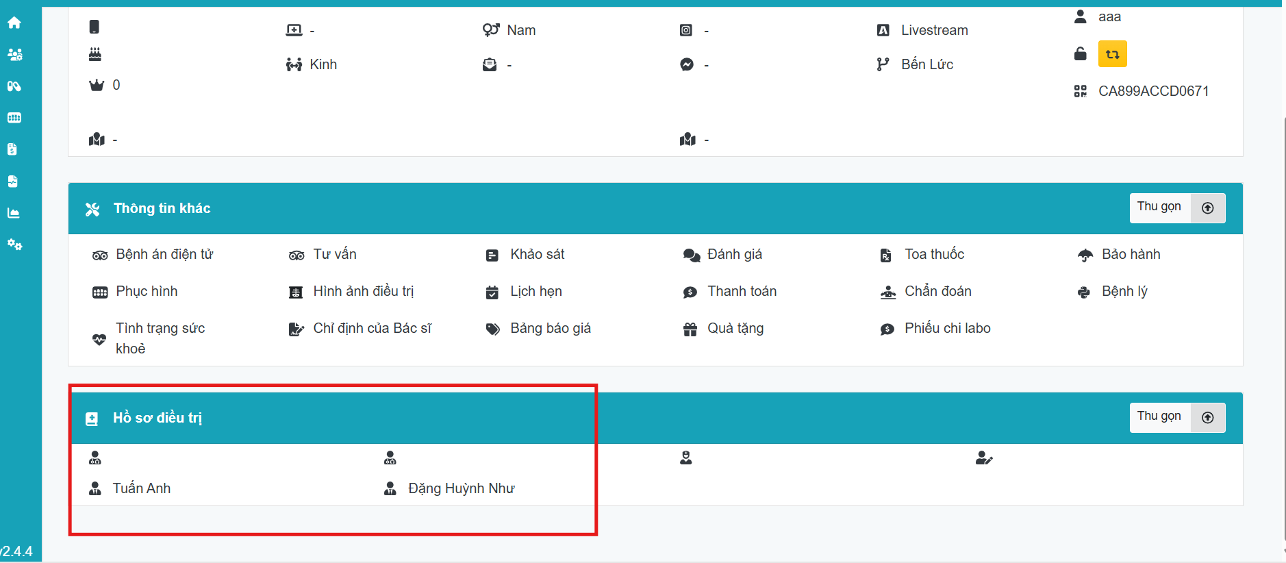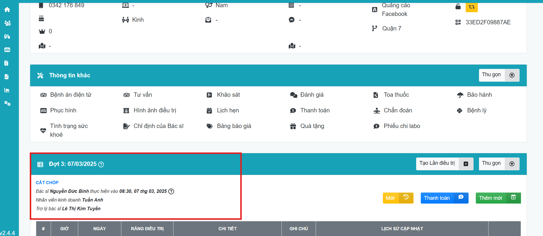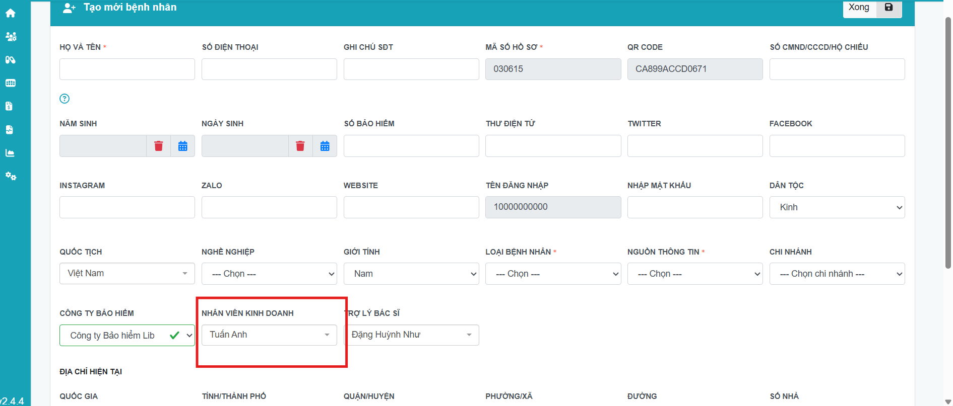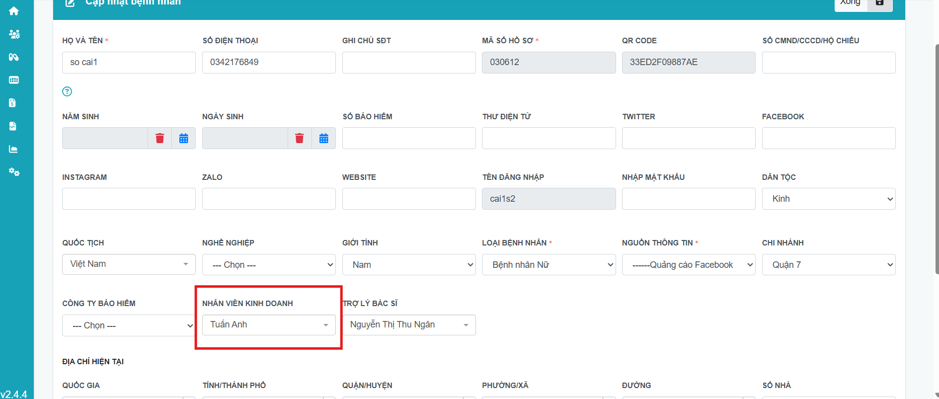 Bước 4: Kiểm tra nhân viên kinh doanh trong hồ sơ điều trị