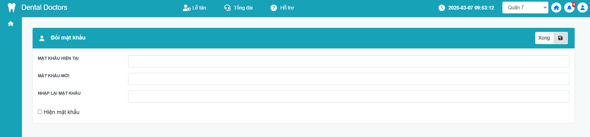 Bước 1: Đăng nhập vào hệ thống phần mềm quản lý phòng khám (nkvietmy.com đối với hệ thống Nha Khoa Việt Mỹ và erp.hakidental.com đối với hệ thống Hakidental)