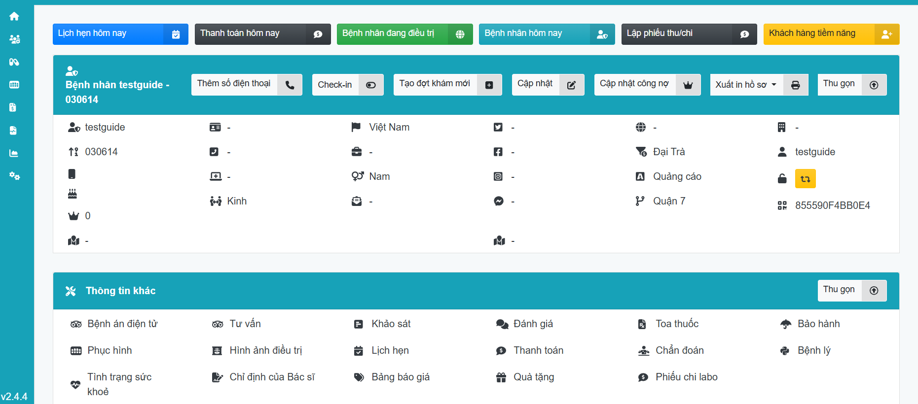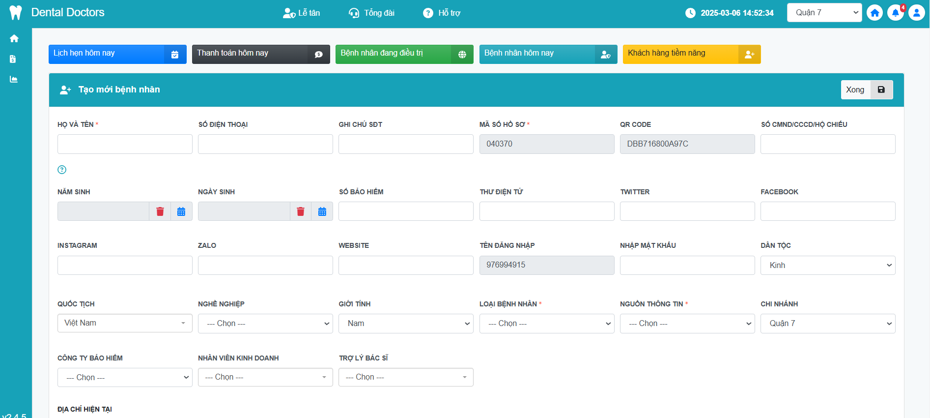 - Mã số hồ sơ mặc định theo từng chi nhánh, mã số hồ sơ trên phần mềm phải trùng khớp mới mã số hồ sơ giấy của bệnh nhân tại phòng khám
