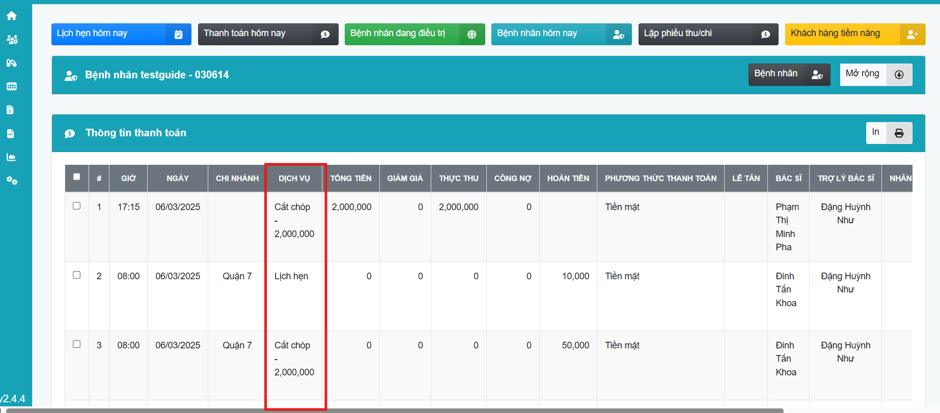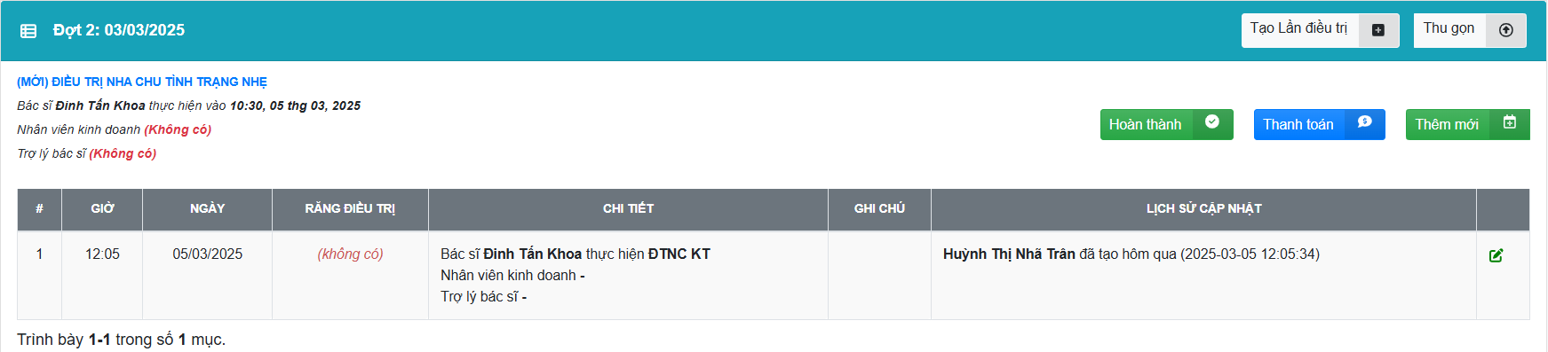 [Phòng khám] Hướng dẫn sử dụng tính năng Tạo lần điều trị và thanh toán cho khách hàng đang điều trị tiếp