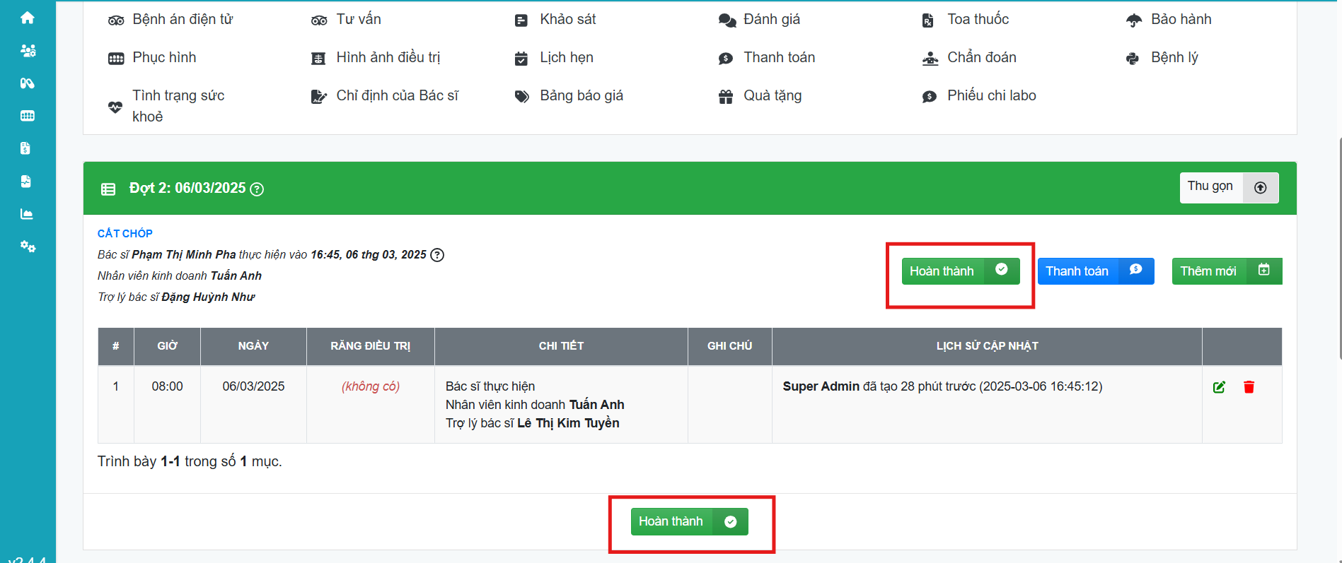 Bước 8: Hoàn thành lần điều trị sau khi thanh toán