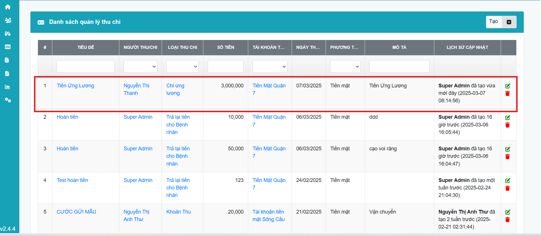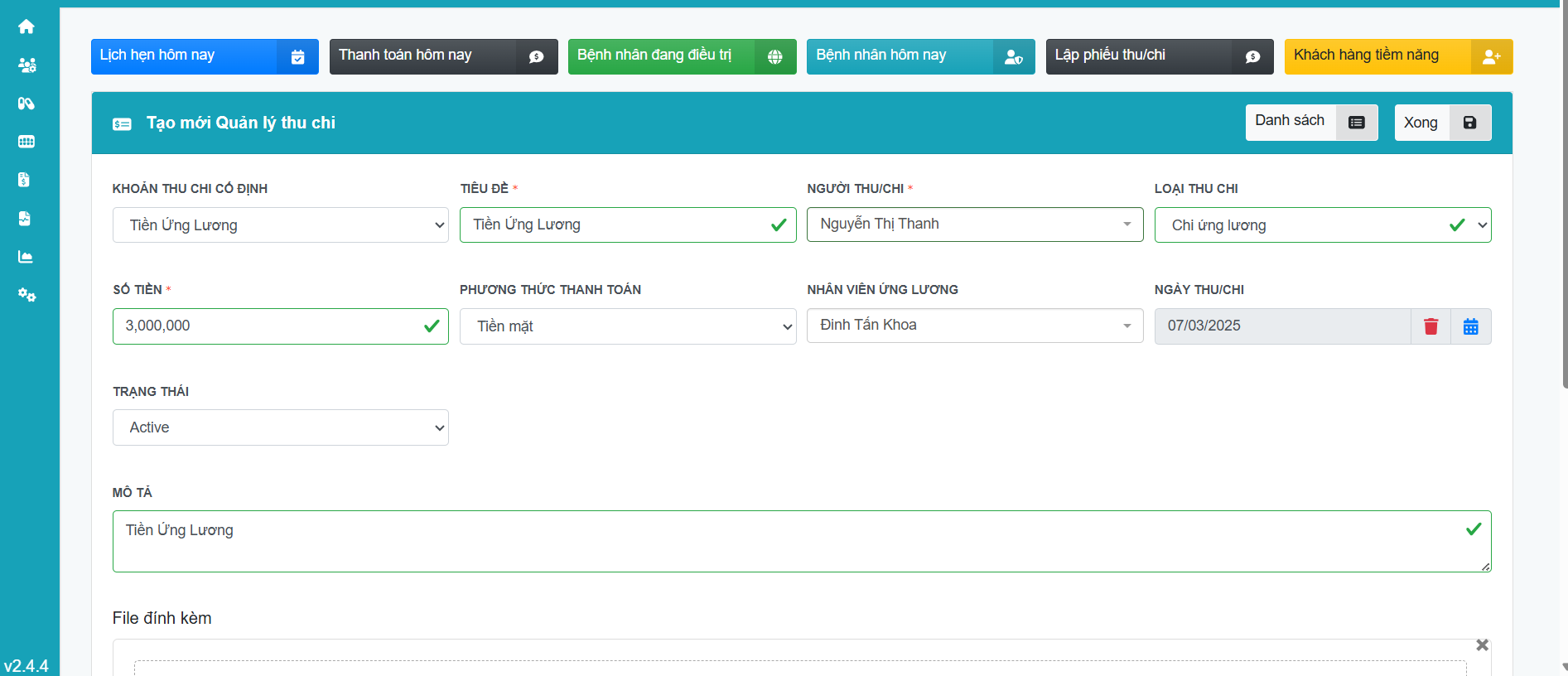 Bước 4: Tạo phiếu chi ứng lương cho bệnh nhân